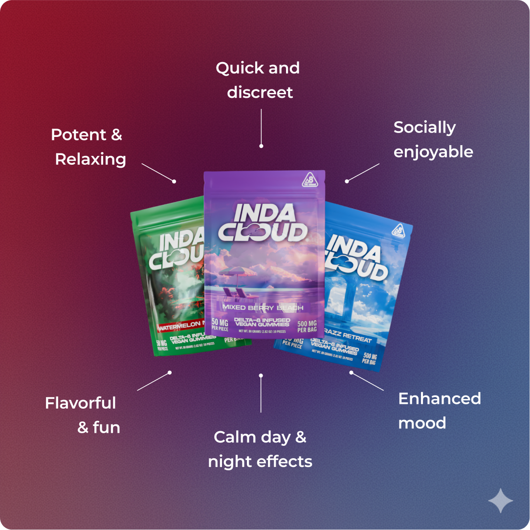 The Delta 8 Vegan Gummies Bundle from Indacloud offers several potential benefits. First and foremost, Delta 8 THC is known for its calming effects, which can contribute to enhanced relaxation and stress relief. The bundle's high concentration of Delta 8 THC can also offer longer-lasting effects compared to other products. Moreover, with three different flavors included, you will enjoy various delicious tastes while benefiting from the potent Delta 8. Whether you are seeking an uplifted mood or relaxation or just want to experience the potential benefits of Delta 8 THC, this bundle is an excellent choice.