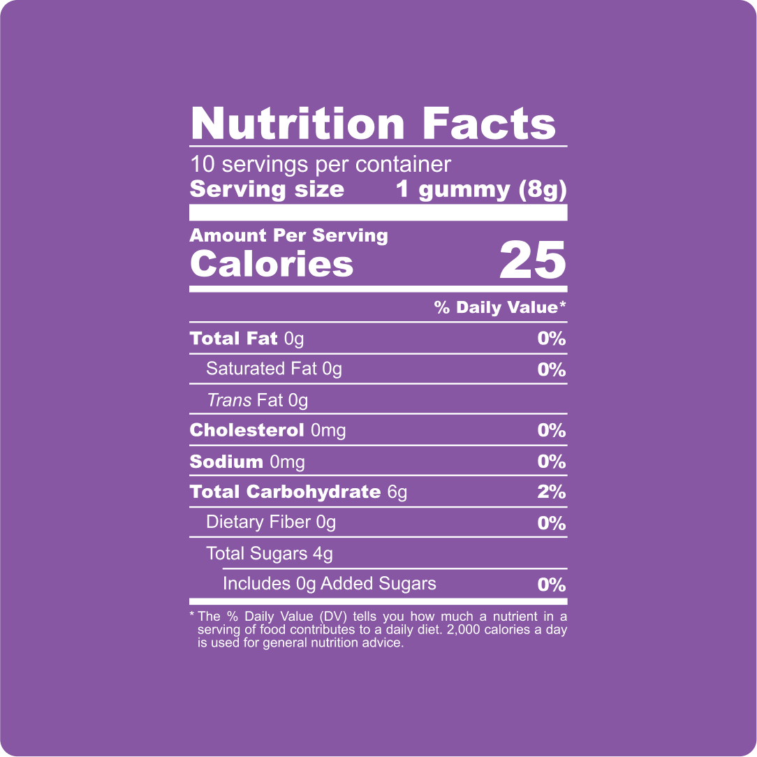 Rich robust berry flavor blended in each bite, designed for deep relaxation, stress relief, and serene evening vibes.