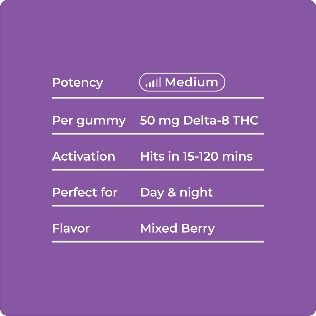 NOTE: IF YOU ARE LOOKING FOR A MORE POTENT EFFECTS, TRY OUR SELECTION OF DELTA 9 GUMMIES.