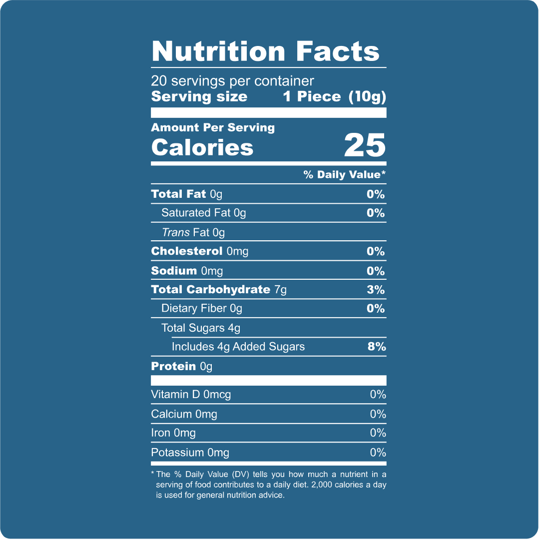 Corn Syrup, Cane Sugar, Fruit Pectin, Potassium Citrate, Organic Natural Flavoring (Organic Natural Flavors, Organic Gum Acacia) And Color, Citric Acid, And Premium Full Spectrum Hemp Extract