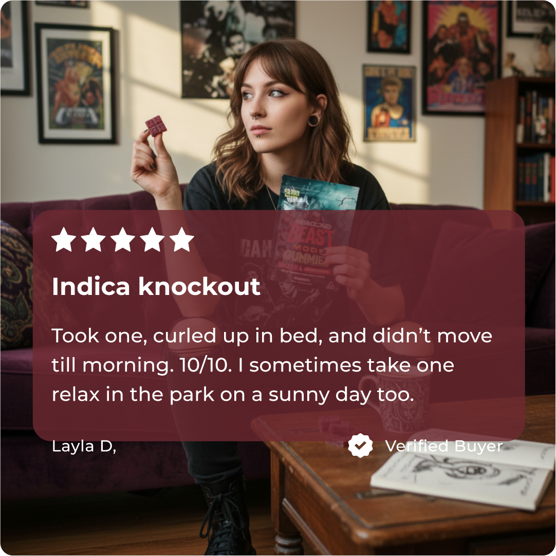 Extreme euphoria meets couchlock calm. Best for nighttime use or heavy stress relief. Seasoned users only.