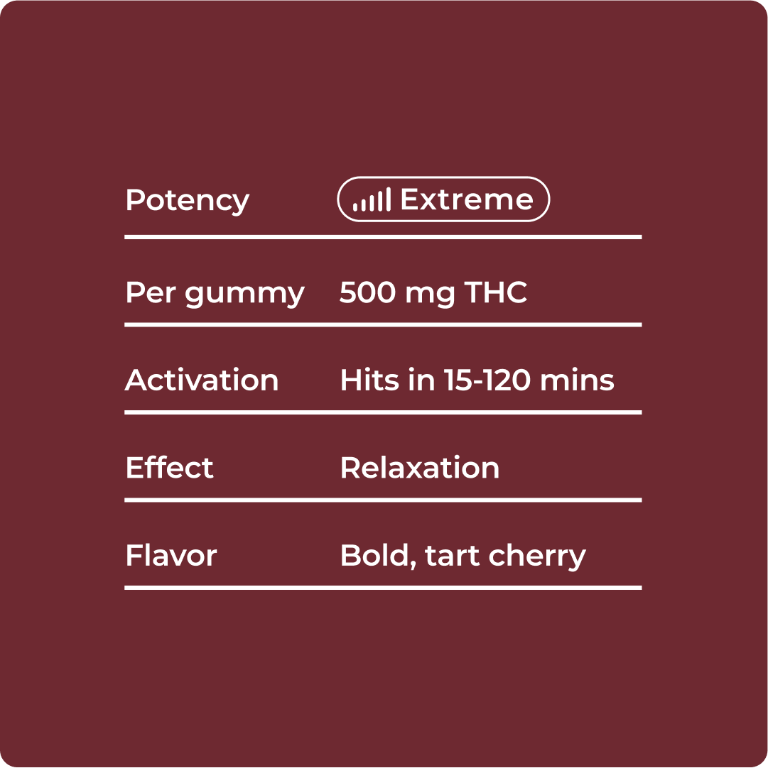 This description will primarily serve as a warning. Releasing these gummies were an internal debate due to the extreme potency. We have released these purely due to high demand from users with an established high tolerance. These gummies are not meant for beginners or individuals who have tried cannabis but “never felt the effects”. Please take these gummies with extreme caution as they are at maximum potency. Once again these gummies are meant for individuals who are experienced cannabis users with established high tolerances. Buckle Up and get ready for the ride.